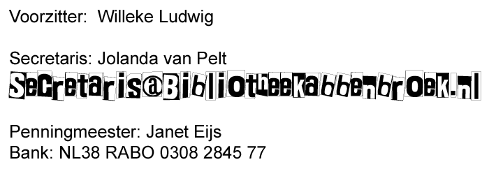 De Stichting Bibliotheek Abbenbroek is ingeschreven bij de Kamer van Koophandel onder nummer 64962199. De bibliotheek is ook te vinden op Facebook en Instagram. Webmaster: WIB0, in consultatie met Jolanda.